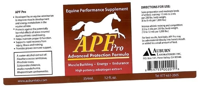 APF Pro provides all the benefits of the original APF, plus more! With the addition of aralia mandschurica and rhaponticum carthamoides, APF Pro packs more power, more immune protection, and more muscle-building benefits! APF Pro was specially formulated to support optimal health in horses under extreme stress and in elite equine athletes. Helps increase resistance to stress induced gastric upset and optimizes glucose uptake to utilize in muscle cells. APF Pro helps delay the onto of fatigue during exercise and improve recovery from physical exertion.