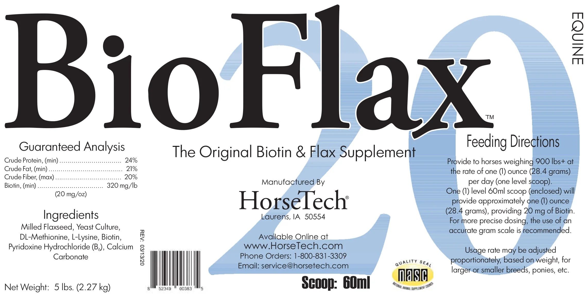 BioFlax 20 is “…the hands-down choice for coat, skin and hoof problems” – Horse Journal, June 2000 issue. Biotin supplementation has been shown to be helpful in improving hoof quality, including improvement in density and overall integrity. Rich in natural omega 3 fatty acids, BioFlax 20 also helps to promote healthy skin, a shiny coat, and hooves that are less prone to drying out and cracking.