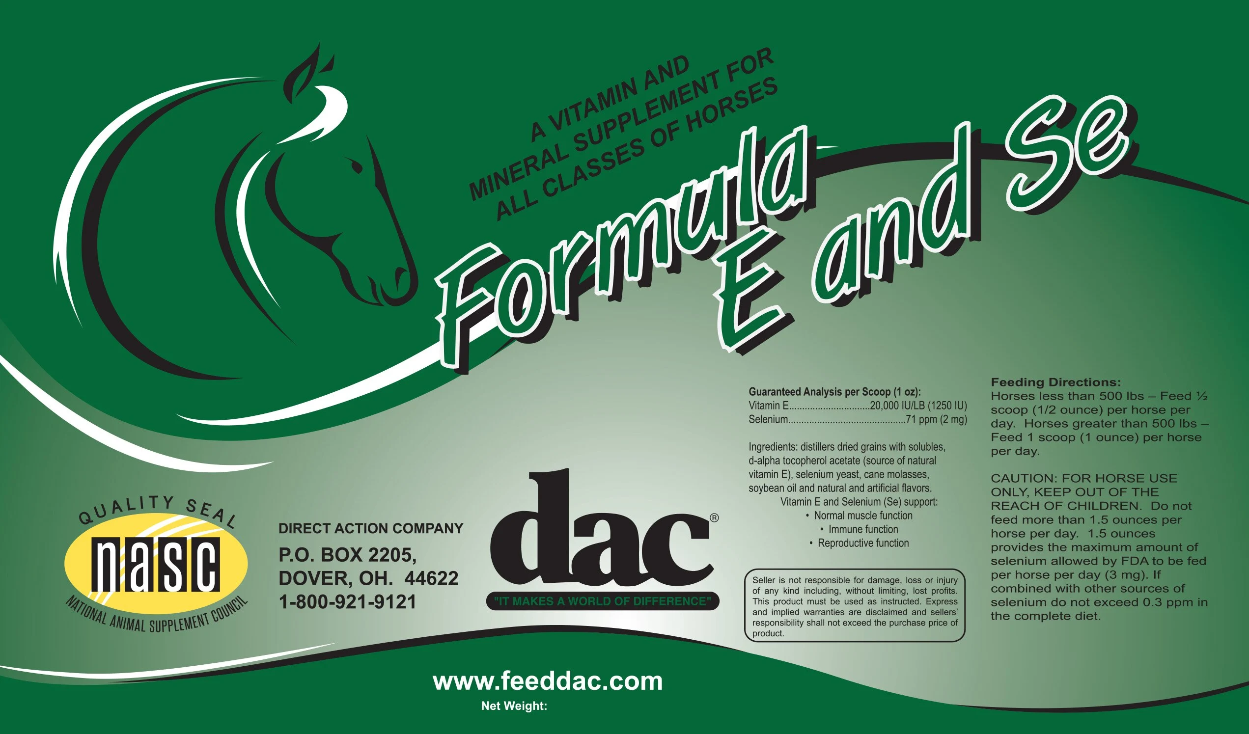dac® Formula E & Se provides a balanced vitamin and mineral profile to support normal muscle function, immune function, and reproductive function. This supplement contains natural vitamin E, a fat-soluble vitamin that has an important role as a potent antioxidant. It works together with the other key ingredient, selenium. This formula contains Sel-Plex®, an organic form of selenium, to ensure maximum absorption.