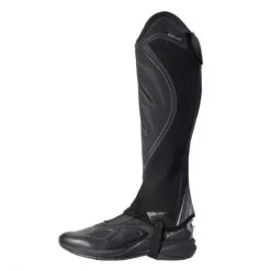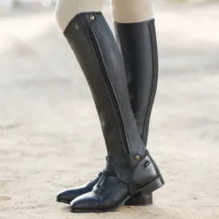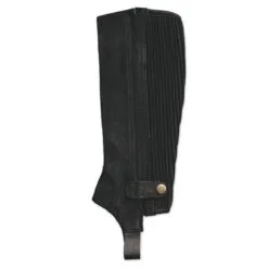 Dublin Suede Kids Half Chaps are made of elegant suede with a tall, form-fitting leg, elasticized panels, curved Spanish tops, hidden, heavy duty zipper, snap over bottom clos…