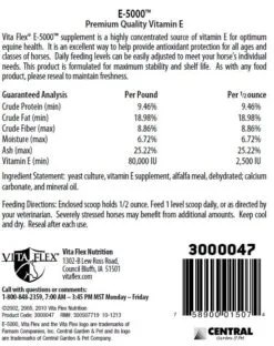 - 1,000 IUs of vitamin E help maintain healthy levels in horses with limited access to fresh forage