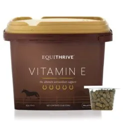 Developed with care and backed by science, Equithrive® Vitamin E Pellets are designed to support your horse’s overall health and wellbeing with natural vitamin E and omega 3. Vitamin E is a natural antioxidant present in fresh forage but because horses can’t synthetize it, horses with restricted access to fresh forage can be lacking in vitamin E. This important antioxidant plays a key role in neutralizing free radicals and addressing oxidative stress, so it could be a smart choice to supplement your horse’s diet with vitamin E if he isn’t getting enough. Natural vitamin E, like that found in this product, has been shown to be more bioavailable than synthetic vitamin E, making this an extra smart choice. Additionally, a hearty 750 mg of omega 3 fatty acids are also included to support a normal response to inflammation and overall wellness. Plus, you’ll love the convenient, mess-free pellets. Like all Equithrive products, this product has undergone rigorous scientific testing at leading research institutions to demonstrate their safety and effectiveness, so you can feel great about choosing it to support your horse.