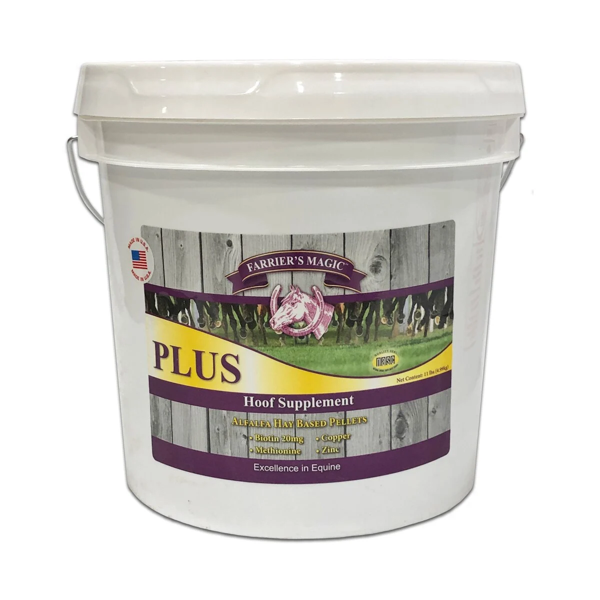 Farrier’s Magic Plus provides nutritional building blocks to support healthy hooves and a shiny coat. Farrier’s Magic Plus is a tasty, alfalfa-based pellet that contains 20 mg of biotin per serving, along with methionine, iodine, zinc, and other key nutrients. Farrier’s Magic Plus is highly palatable, easy to feed!