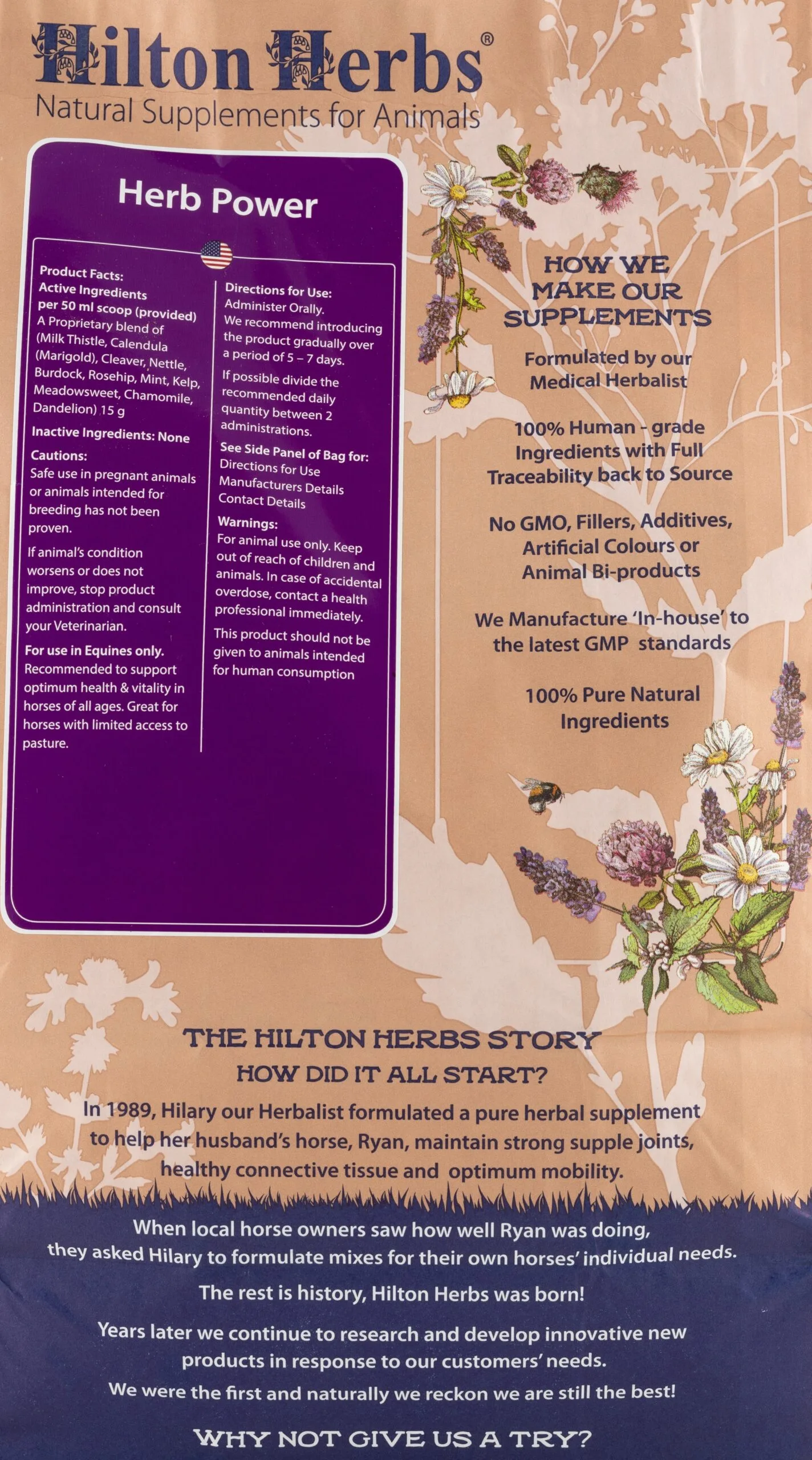 Nature provides a plentiful array of seasonal plants like springtime cleavers and autumn hawthorn berries. Unfortunately, many horses only have limited access to such plants. Herb Power is designed to maintain and support horses of all ages with its carefully formulated selection of the very best Mother Nature has to offer! This formula is ideal for horses with restricted access to pasture, horses on pasture with little variety of herbage, and young horses during growth periods. This formula provides herbs such as nettle, cleaver, and hawthorn, all of which were carefully chosen for their high vitamin and mineral content. Itβs ideal for horses with restricted access to pasture and horses on pasture with little variety of herbage because it provides a selection of herbs they may not be grazing on naturally.
