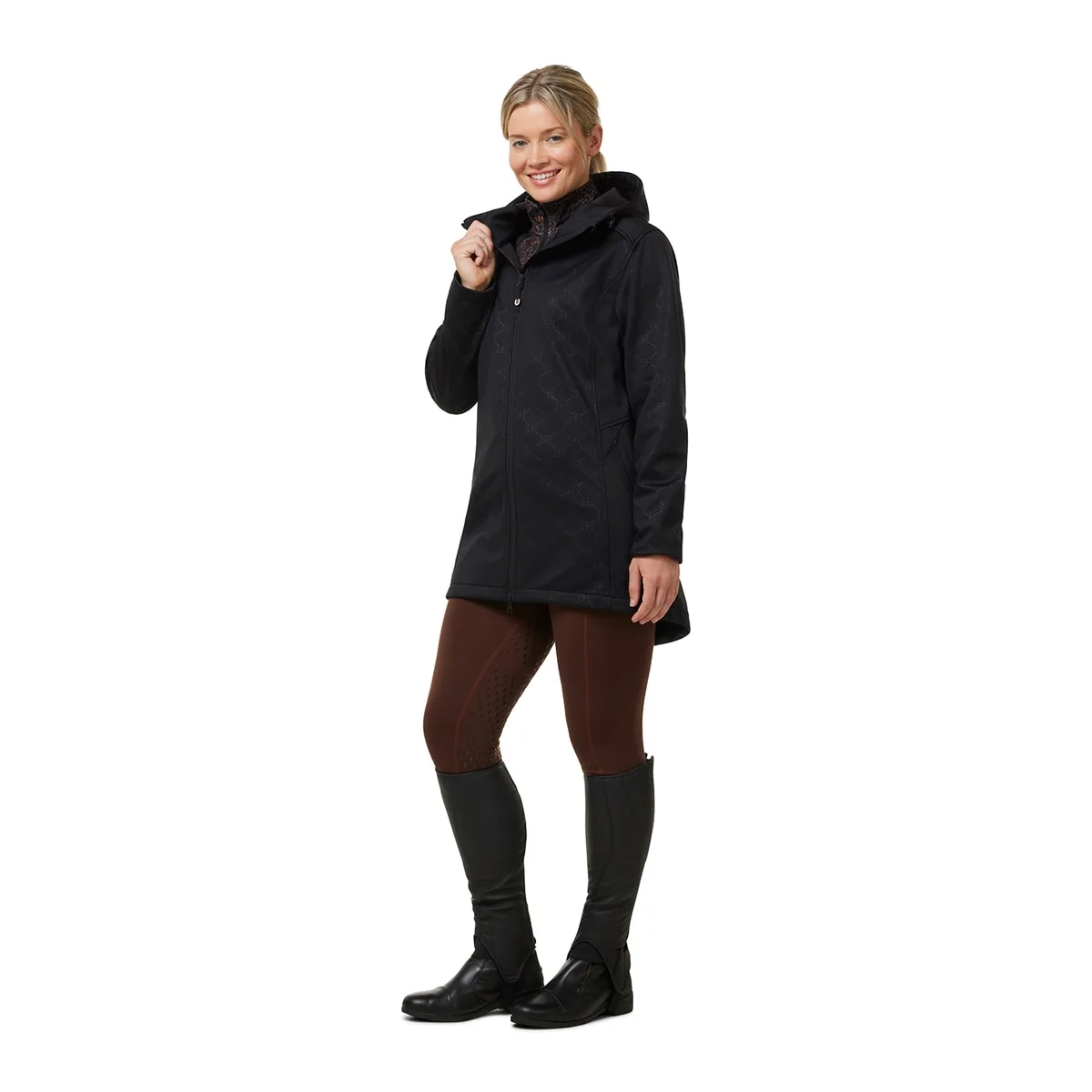 An instant style boost trotting around the arena or running around town, this three-quarter length softshell delivers extra coverage and a flattering, elegant, feminine silhouette….