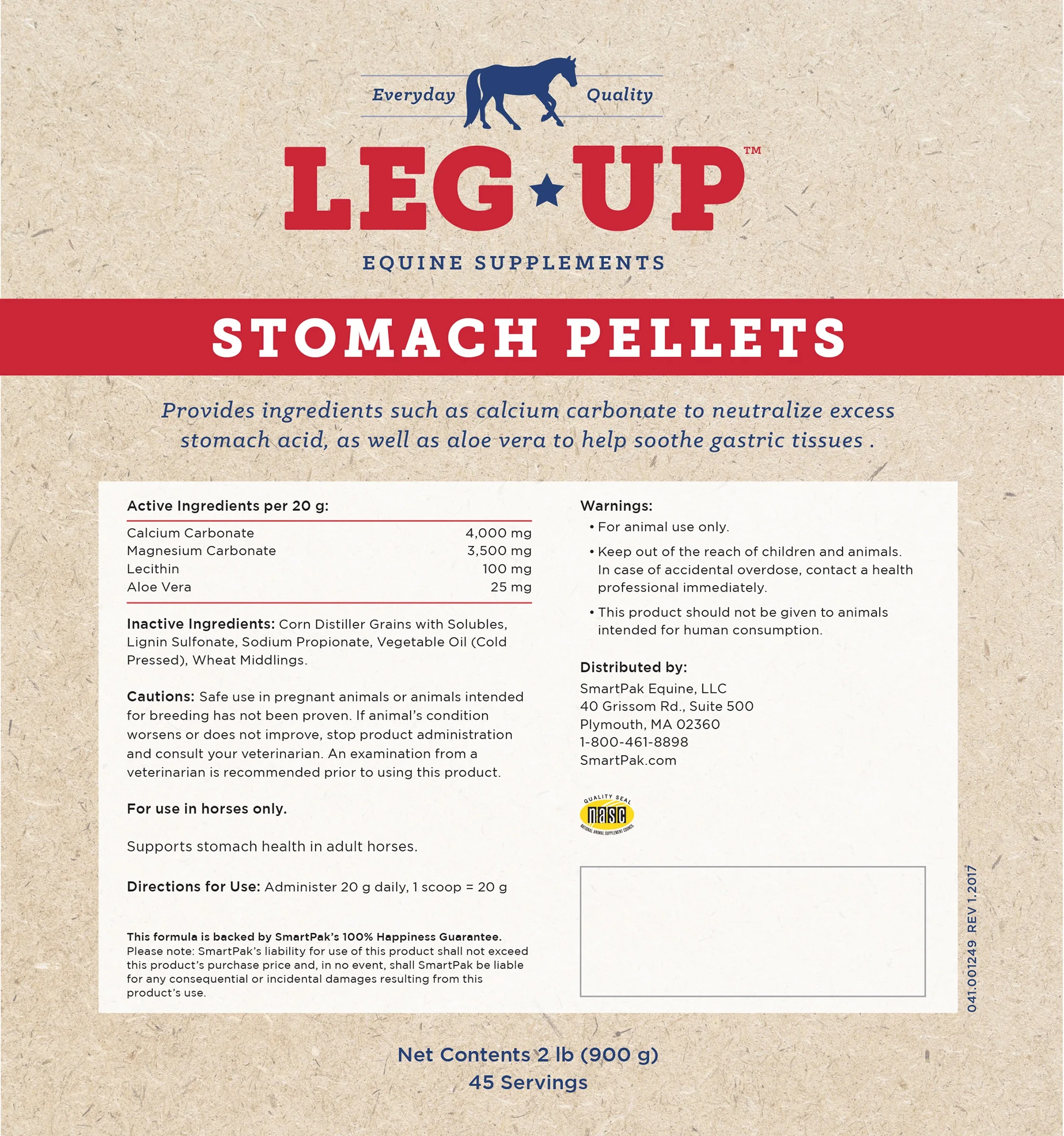 Leg Up® Stomach Pellets provide fundamental ingredients for gastric health in an easy-to-feed pelleted form. This economical formula includes magnesium carbonate and calcium carbonate to help neutralize excess stomach acid, along with lecithin and aloe vera to help maintain a healthy stomach lining. Leg Up Stomach Pellets are ideal for horses at risk for occasional gastric issues.